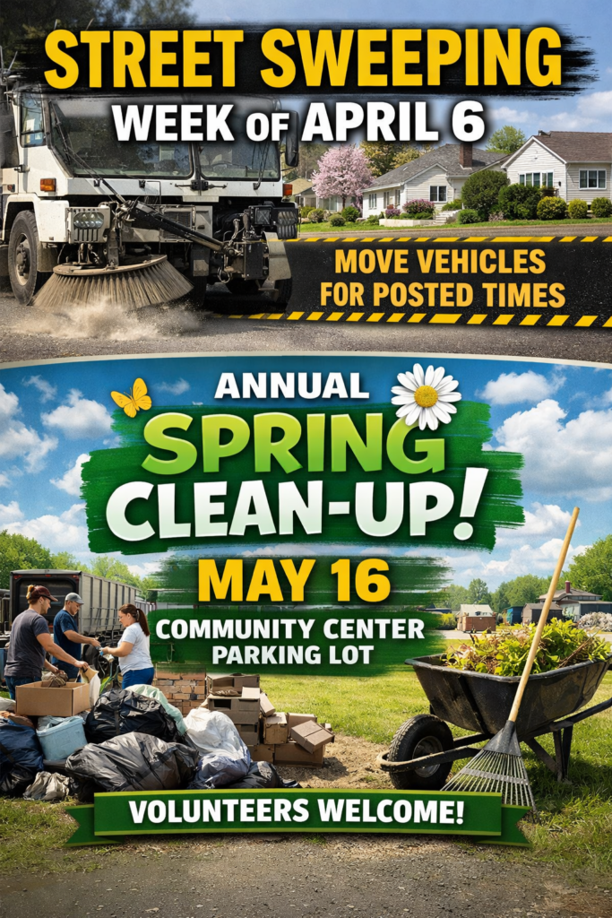 Gratz Borough will conduct annual street sweeping during the week of April 6. Residents are asked to watch for posted sweeping times on their streets and move vehicles when crews are scheduled in your area so equipment can safely and effectively clean the streets.