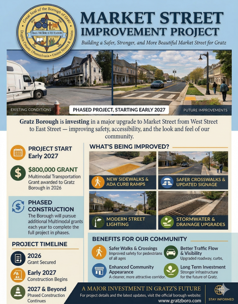 Gratz Borough is moving forward with a major infrastructure improvement project that will transform Market Street and enhance safety, accessibility, and overall appearance throughout the community.